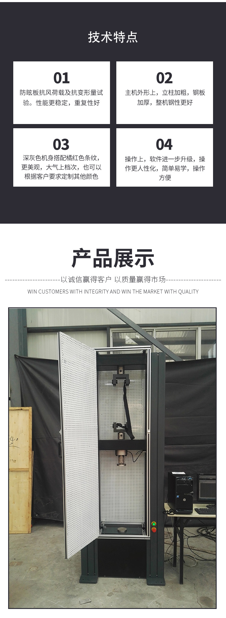 當前位置:首頁 > 產品中心 > 防眩板抗風荷載試驗機 ? 防眩板整體力學性能牽引力試驗機